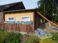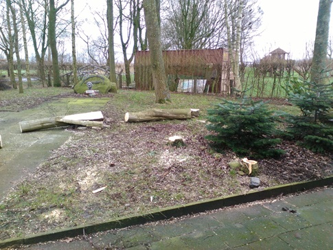 Es mussten Für den Anbau ein paar Bäume weichen.