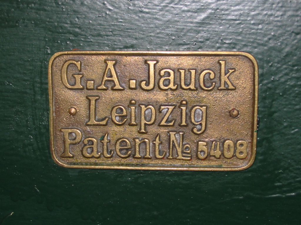 "Geräte des Hersteller G.A. Jauck aus den 1880er und 1890er Jahren trugen einen dunkelgrünen Anstrich (das ist heute die RAL-Farbnummer 6009: Tannengrün) mit rotbraunen Begleitstrichen als Zierlinien. Bekannt sind aber auch frühere Anfertigungen mit einem schwarz/weißen Anstrich, wobei die Farbe weiß aber nur als Zierlinie am Wasserkasten vorkam."