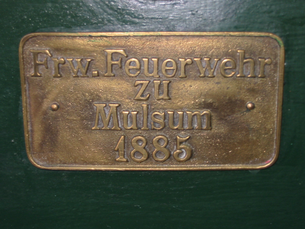 Nach vorausgegangenem Beschluß der Gemeinde-Ausschuss-Versammlung im März 1885 ein Spritzenhaus neben dem Friedhof zu bauen sowie Festlegung der Modalitäten für die Bestellung der Spritze am 26. September 1885, wurde die Freiwillige Feuerwehr Mulsum gegründet.