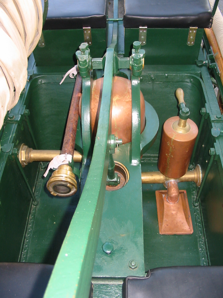 Darüber hinaus wurde das aus Messing gefertigte Spritzen-Pumpwerk sowie die aus Kupfer gefertigten Zubehörteile fein abgeschliffen und neu poliert